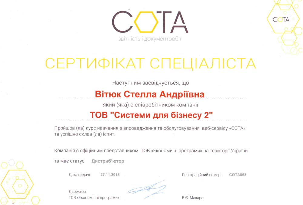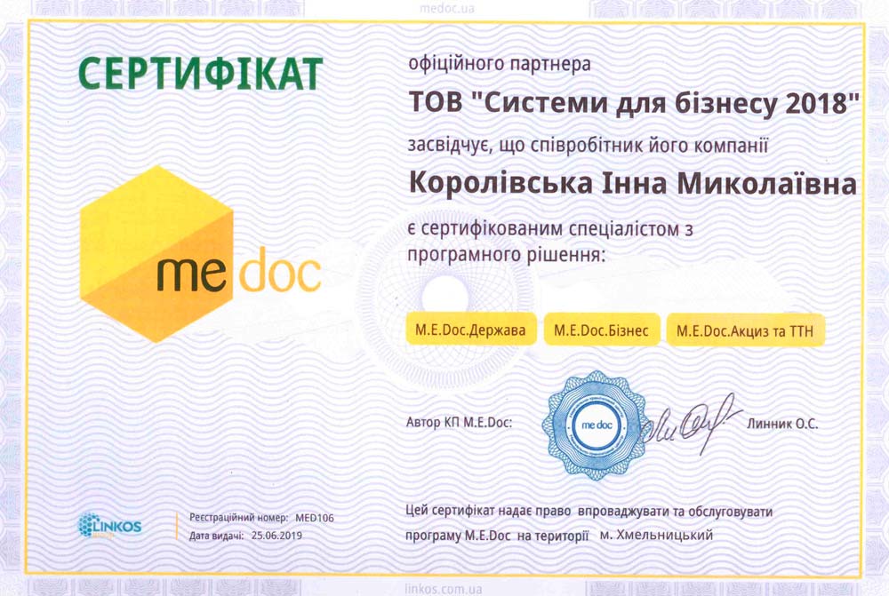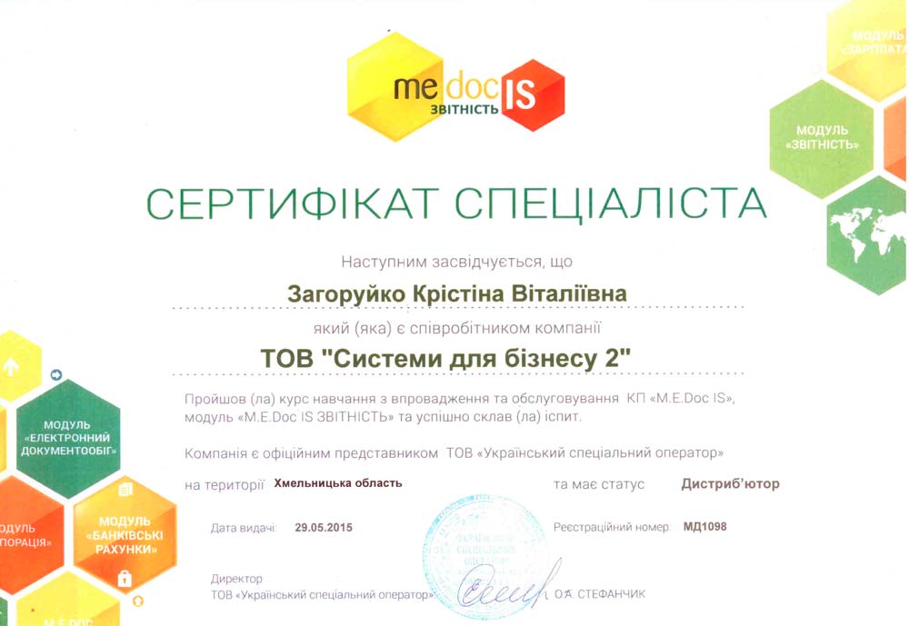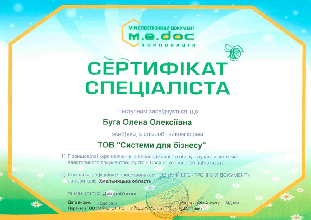 Сертификат специалиста M.E.Doc