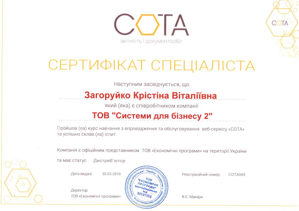 Сертификат специалиста СОТА