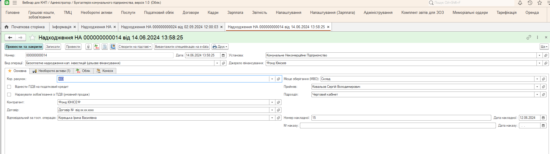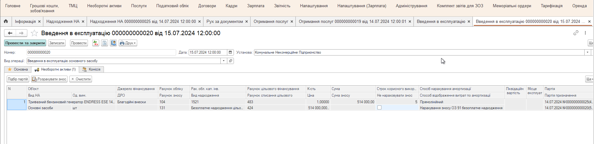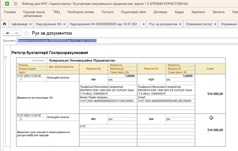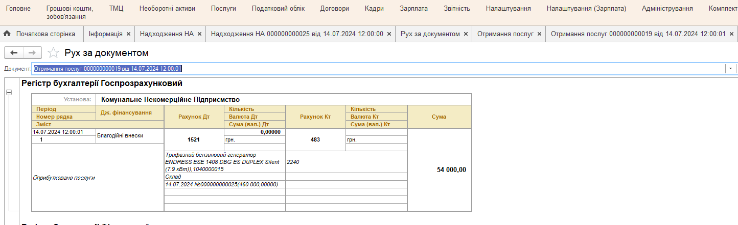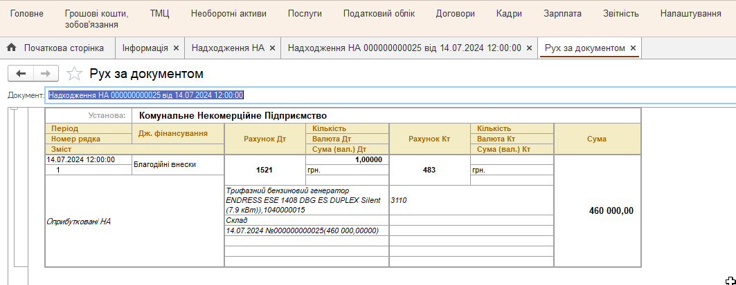 Рассмотрим пошагово, как автоматизировать учет на примере получения электроагрегатной установки в качестве благотворительной помощи.