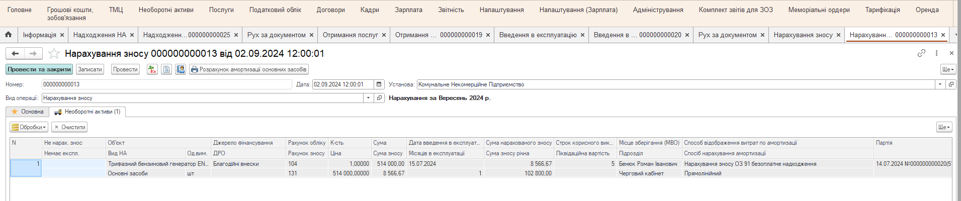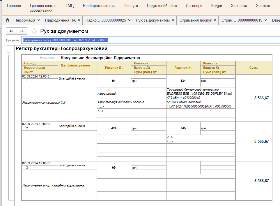 Исходные данные: Учреждение здравоохранения, имеющее статус плательщика налога на добавленную стоимость, приобрело за собственные средства дизельный генератор Matari MC 350 (350 кВт), стоимость которого составляет 2 900 000,00 грн. Понесены затраты на монтаж в сумме 87 000,00 грн.