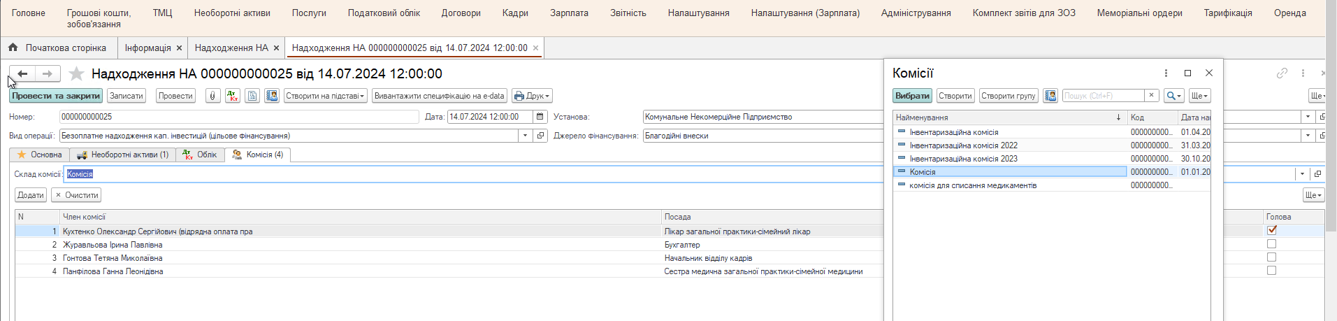 Выберем комиссию, выбрав из справочника.