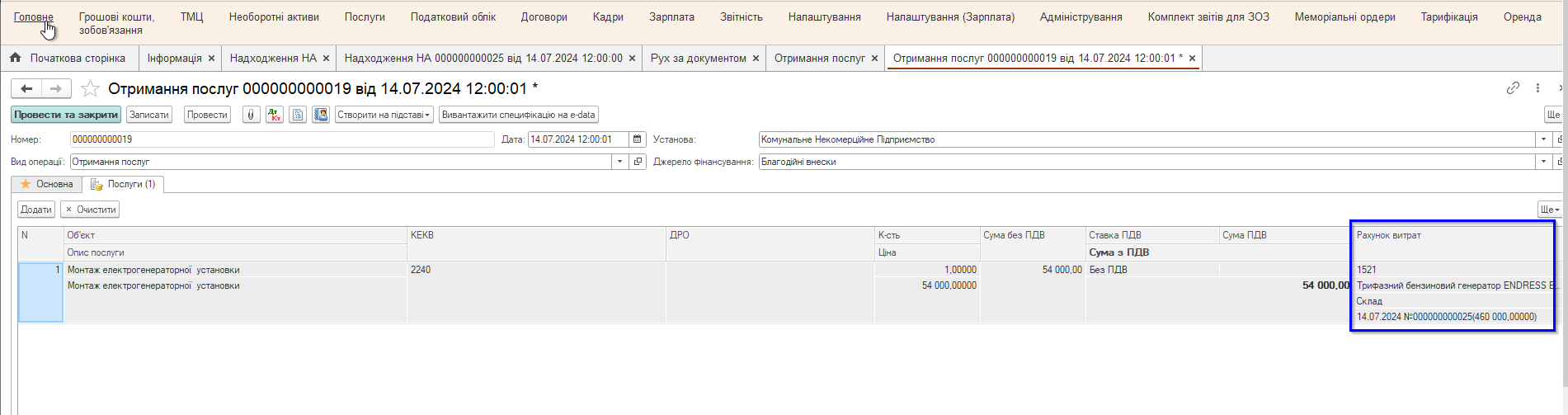 Исходные данные: Учреждение здравоохранения, имеющее статус плательщика налога на добавленную стоимость, получило от Фонда Поддержки Украины в качестве благотворительной помощи трехфазный бензиновый генератор ENDRESS ESE 1408 DBG ES DUPLEX Silent (7.9 кВт), стоимость которого составляет 460 000,00 грн. Также Фонд Поддержки Украины оплатил услуги по монтажу генератора на сумму 54 000,00 грн.