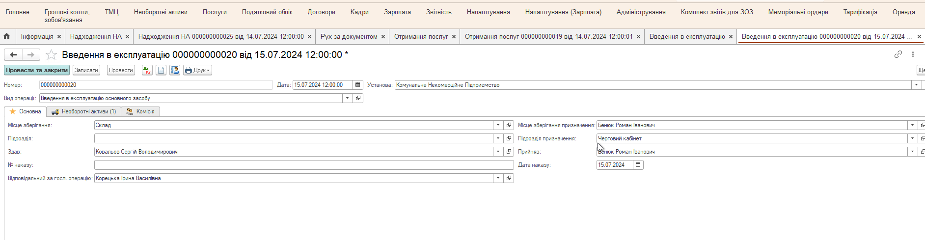 Для этого достаточно в документе Ввод в эксплуатацию на вкладке Основная выбрать вид операции Ввод в эксплуатацию основного средства. Заполнить другие соответствующие поля.