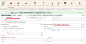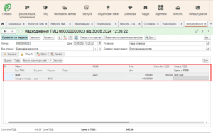 - На вкладке «ТМЦ» заполняем табличную часть.