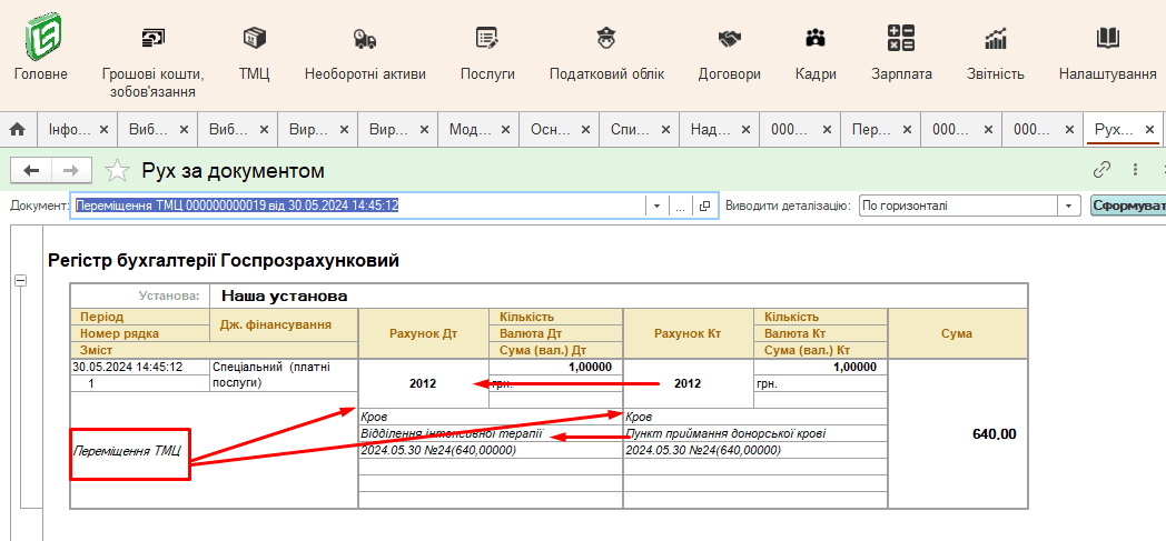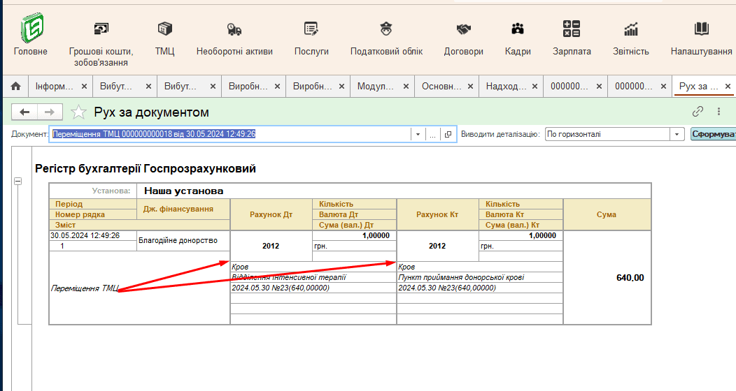 Документ «Выбытие ТМЦ», Вид операции «Внутриведомственная передача ТМЦ»