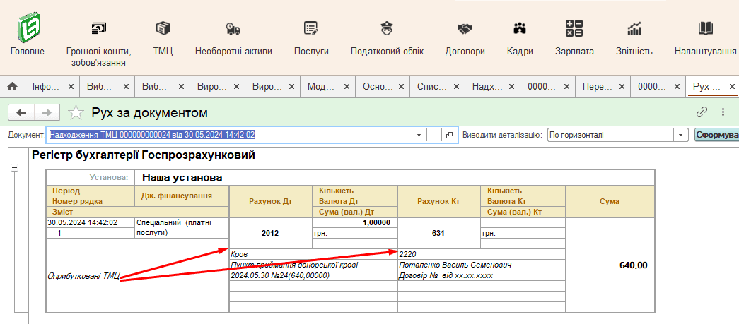 Корреспонденция субсчетов бухгалтерского учета при оприходовании полученной донорской крови на платной основе