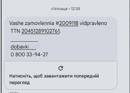 Покупатель, в свою очередь, получает сообщение об отправке заказа.