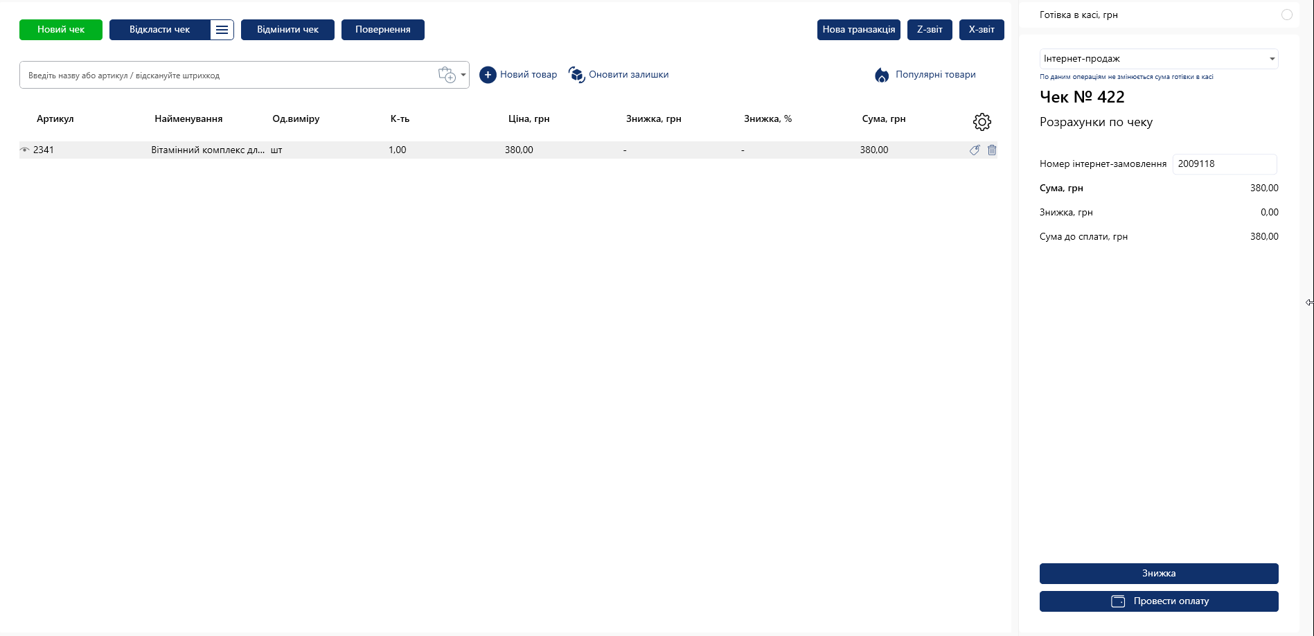 - Работа с отложенными чеками (интернет-заказы).