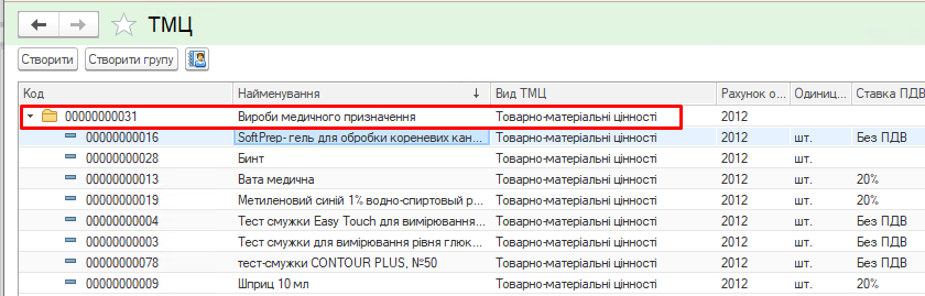 Необходимо создать группы ТМЦ. Наименование каждой группы должно отвечать названиям, указанным в Таблице 2 Приобретения, оприходование ТМЦ.
