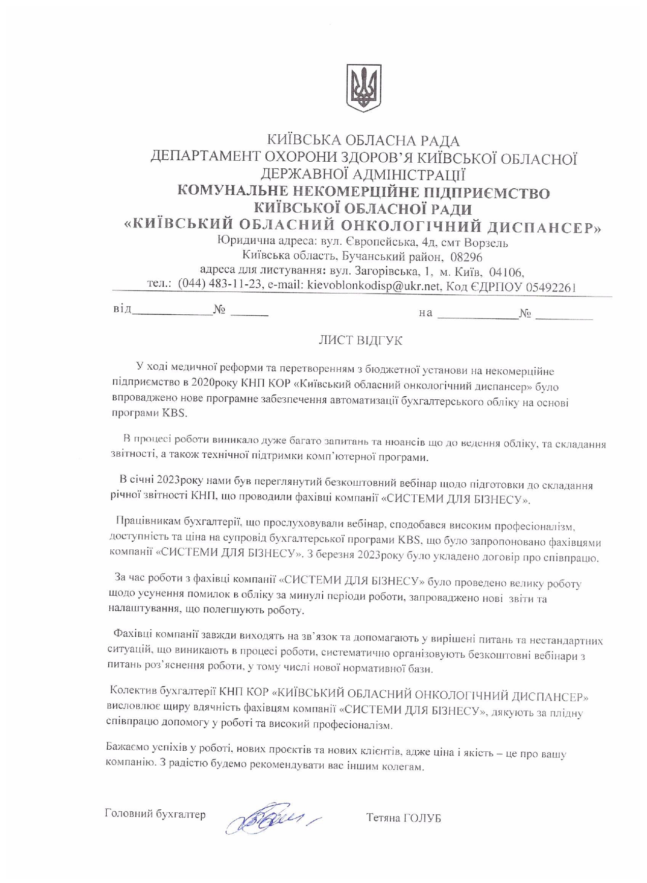 КНП КОР «Киевский областной онкологический диспансер...