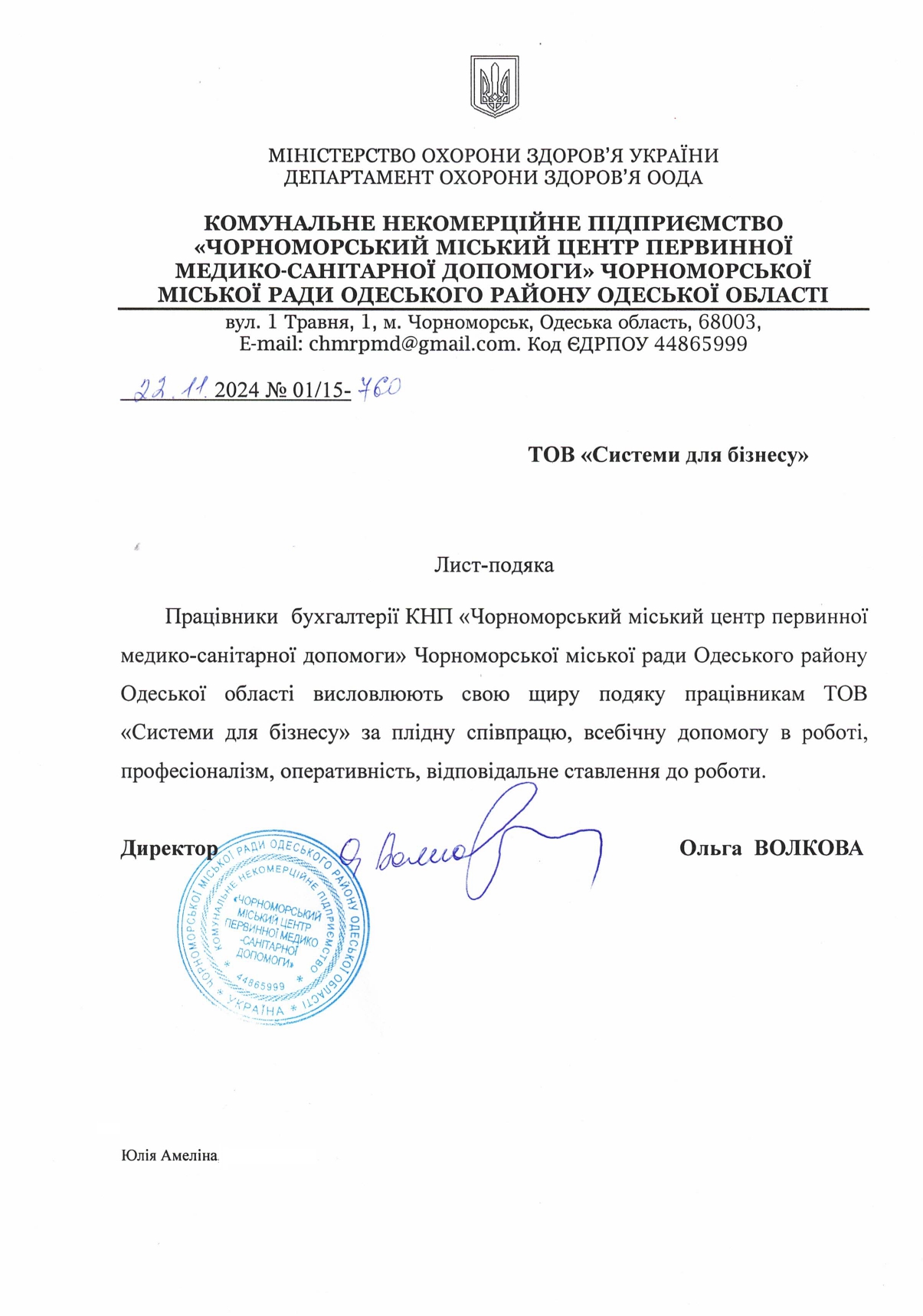 КНП «Черноморский городской центр первичной медико-сани...