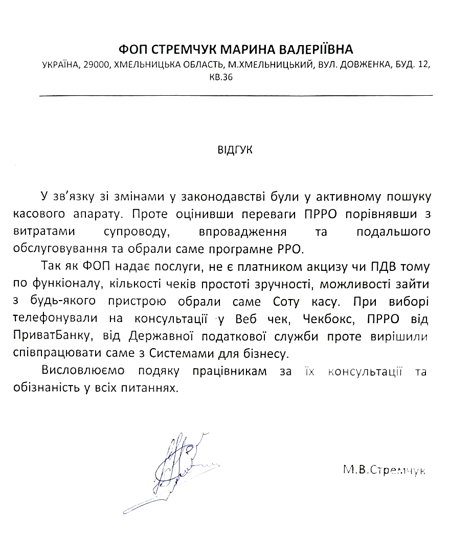 При наличии любого гаджета с подключением к интернету ФОП может быстро и надежно создать и фискализировать чек, где бы не находился его торговый объект. Даже если это курьер, доставляющий заказы.
