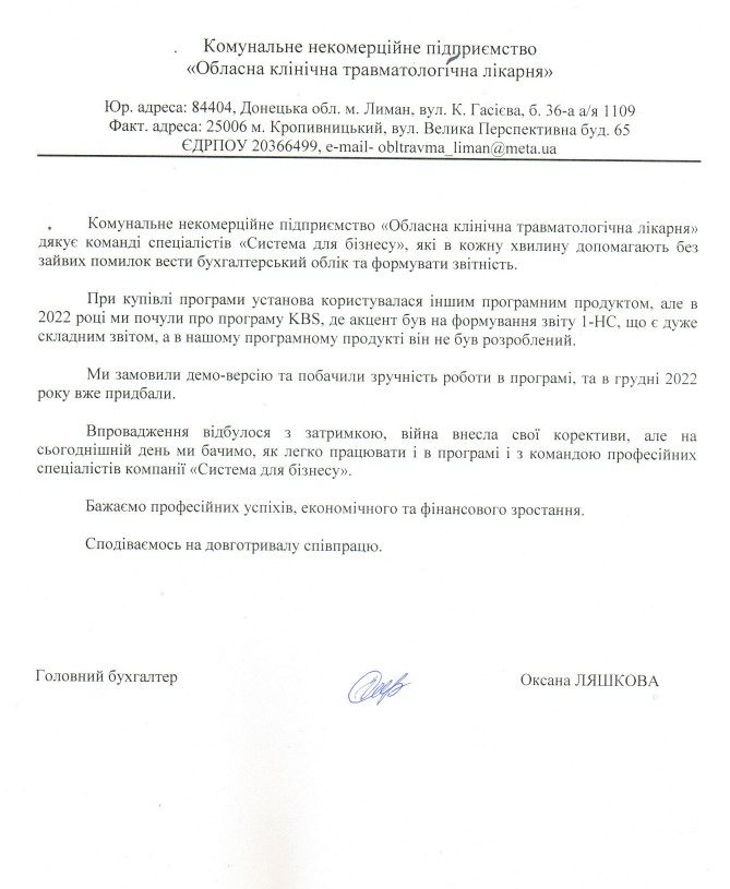 Обласна клінічна травматологічна лікарня м. Лиман: відгук