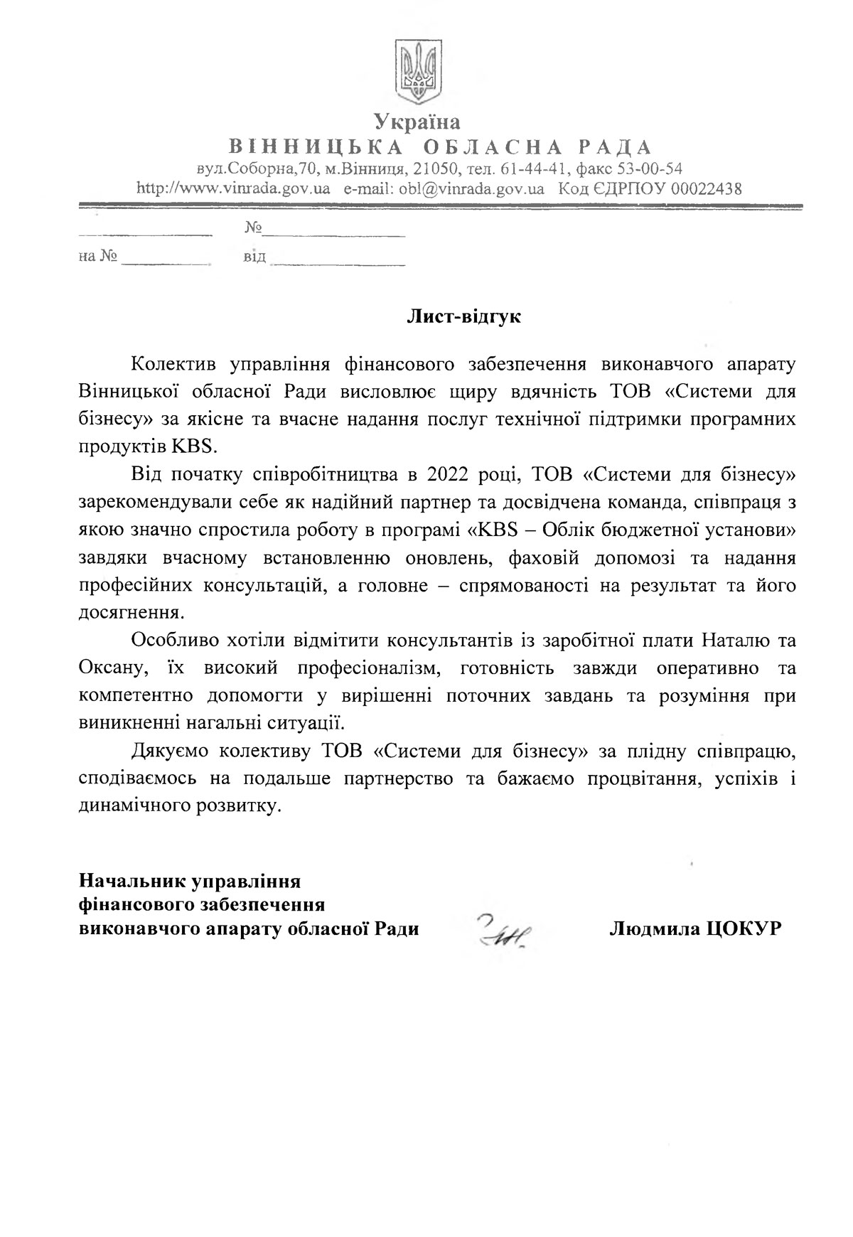 Управление финансового обеспечения Винницкого областного Сов...